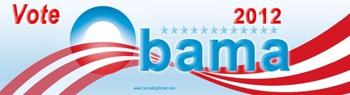 Magnetic bumper sticker uses Barrack Obama's last name with the year 2012 on it to promote his support for re-election in the 2012 presidential campaign. Pro Obama Product.
